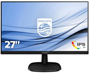 Der Philips 27 Zoll Bildschirm bietet eine ausgezeichnete Bildqualität und brillante Farbdarstellung in beeindruckender Full HD Auflösung Auflösung: FullHD (1920 x 1080 bei 60 Hz) Max Blickwinkel 178 Grad horizontal – 178 Grad vertikal Format: 16:9; Reaktionszeit: 4 ms grau zu grau Flicker Free, vorgesehen für Vesa Wandhalterung Kontrastverhältnis: 3000:1 Helligkeit 250 cd/m Abmessungen (BxTxH) 72,50 x 44 x 11,5 cm Gewicht 3,94 kg Anschlüsse: 1x VGA, 1x HDMI, Audio Anschluss, mit HDMI Kabel
